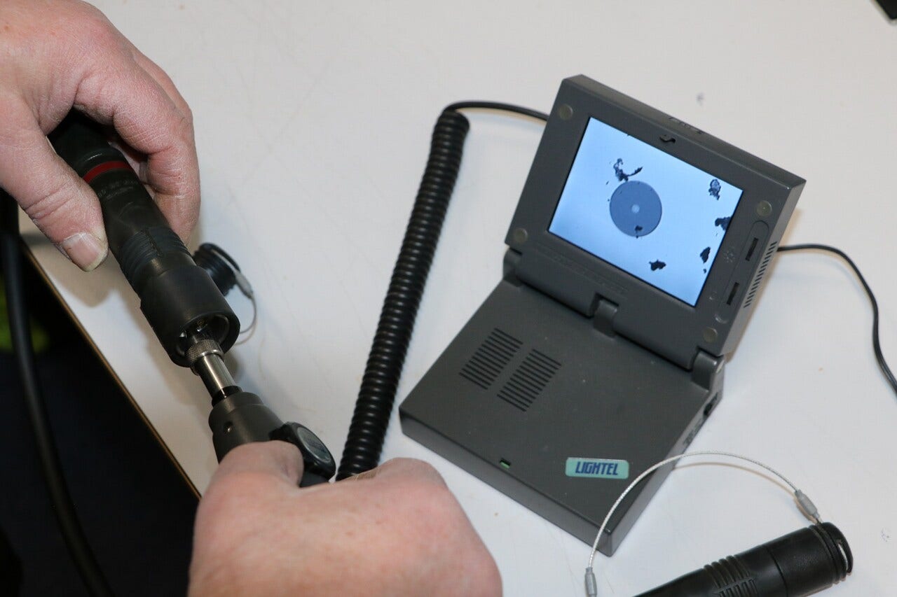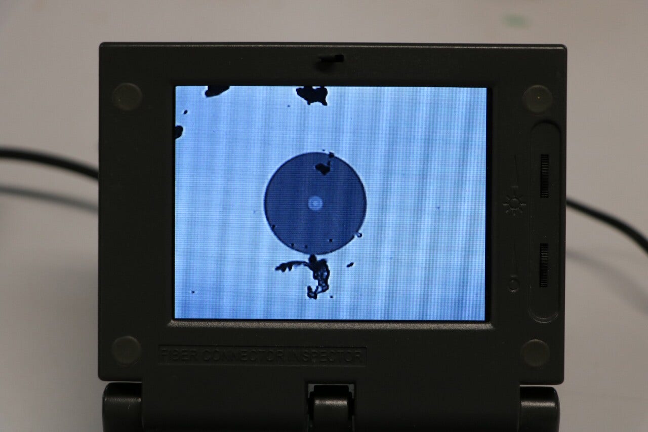Gebruik een wifi-scope om de connector en ferrule nauwkeurig te inspecteren. Met een vergroting van 400x kun je precies zien hoe vuil de glasvezel is. Met deze scope kun je 400x inzoomen en kijken hoe vies de vezel daadwerkelijk is en daarmee kan je beoordelen welke reinigingsmethode je moet gebruiken.